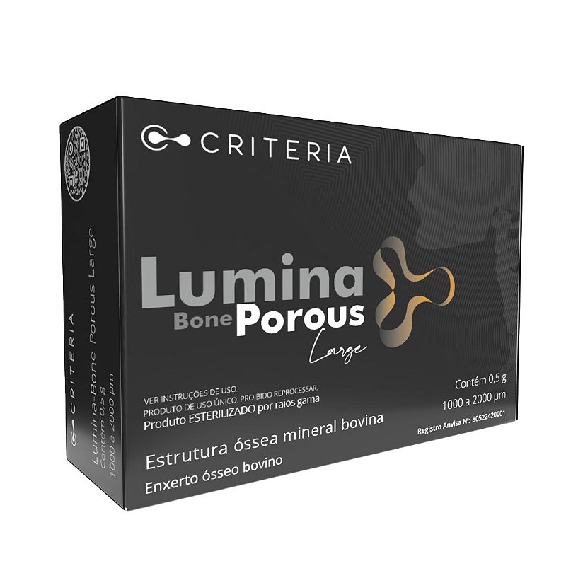 O LUMINA-BONE POROUS possui total semelhança com o tecido ósseo humano e altíssima porosidade, o que induz a proliferação de vasos sanguíneos (angiogênese) e a migração de células ósseas. A similaridade com o tecido ósseo humano permite que a osteopromoção seja realizada da forma mais natural. O processo de fabricação do LUMINA-BONE POROUS é inovador, a eliminação das proteínas do osso bovino por meios químicos, preserva totalmente os componentes desejáveis do tecido ósseo bovino e o baixíssimo teor de cristalinidade.