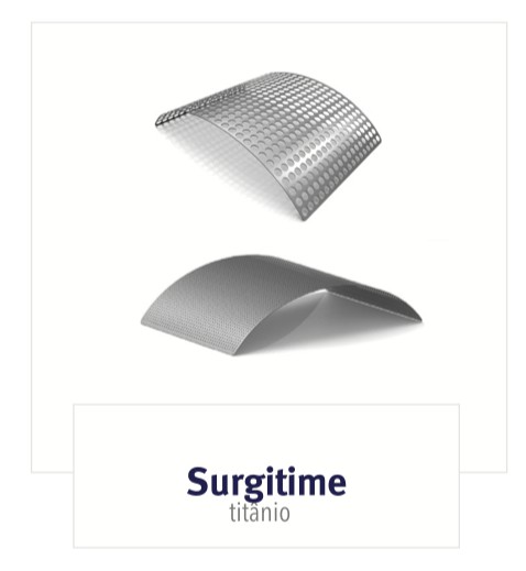 A surgitime.titânio (malha de titânio) é indicada para procedimentos regenerativos médicos (ortopedia e neurocirurgia) e odontológicos (periodontia, bucomaxilofacial, implantodontia), principalmente para reconstruções ósseas. As perfurações existentes na malha permitem a difusão de fluido intersticial, porém não permitem a invasão de células do tecido conjuntivo e epitelial. Por possuir memória, pode ser pré moldada ao defeito e fixada com parafusos para enxerto e fixação, porém não há necessidade da utilização do parafuso para enxerto para que a malha de titânio exerça sua função, o seu uso varia da escolha do profissional que utiliza.
